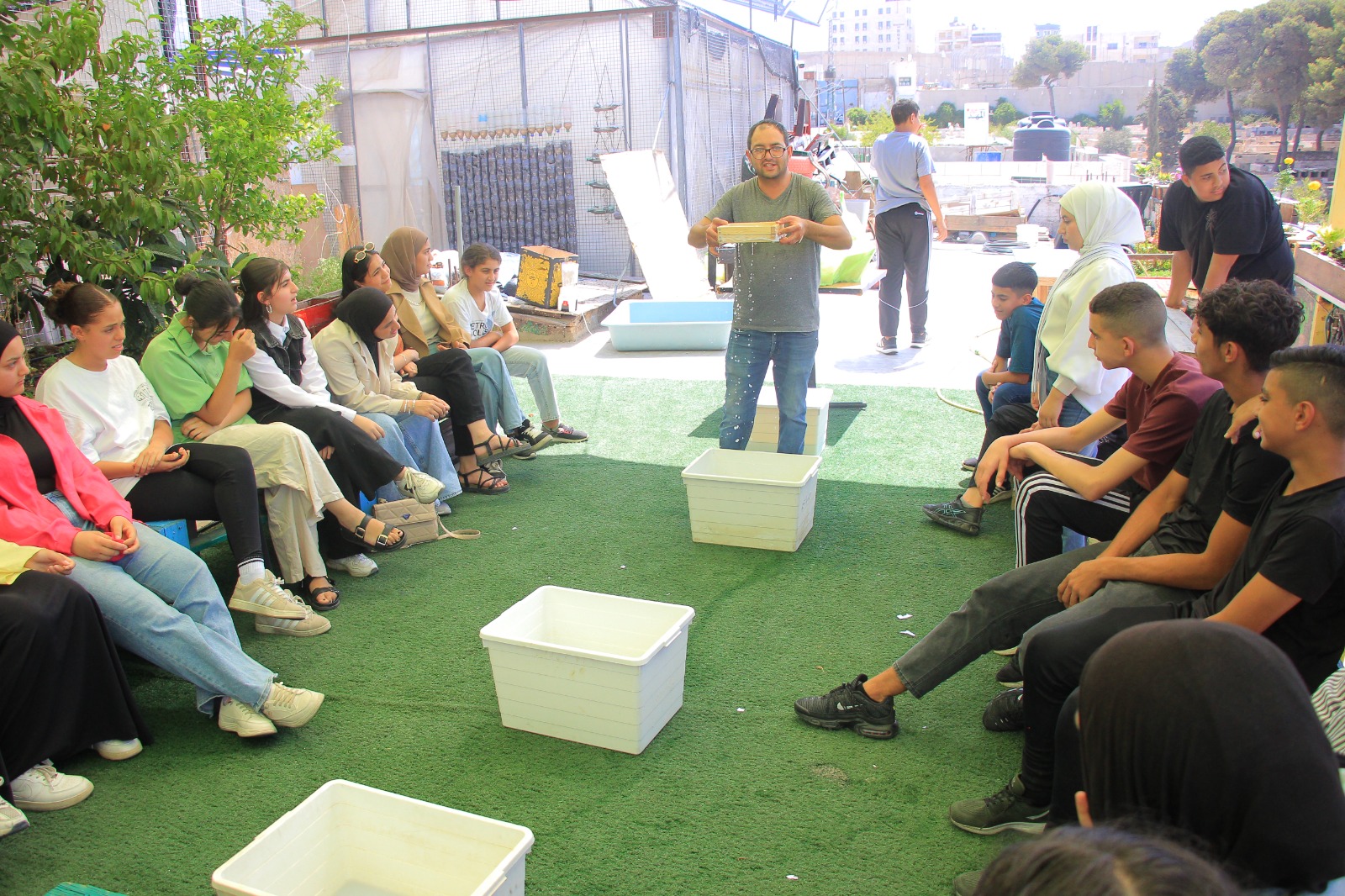 The fifth annual Summer Environmental Camp engaged more than 40 children aged 12–16 from Aida, Al-Azza, and nearby communities in a five-day program. Activities included ice-breaking exercises, lessons on the connection between environment and Palestinian identity, an environmental hike from Al-Makhrour to Battir, discussions on pollution, paper recycling workshops, plastic bottle decoration, and a closing recreational trip to Husan Resort. The camp provided children with opportunities to learn, create, and connect with their community.